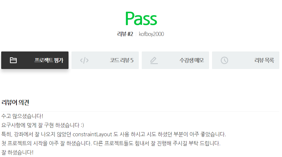 저도 첫번째 프로젝트에 대해서 피드백을 받았습니다.