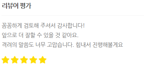 이렇게 첫번째 리뷰를 성공적으로 마쳤습니다.