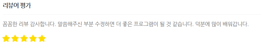 또, 강의만으로는 알 수 없는 이런 부분들을 놓치지 않고 피드백해주신게 정말 고마웠습니다.