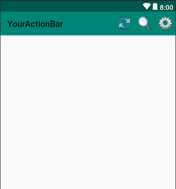 아래의 그림에 새로고침, 검색, 설정 등의 아이콘이 보이실 겁니다. 이런 액션바를 추가하는 것은 레이아웃에서 이루어지는데요, 액션바를 위한 레이아웃 파일을 새로 만들어주어야 합니다.