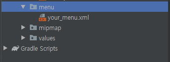 메뉴 리소스 파일을 정의하기 위해, 메뉴 폴더를 새로 생성한 뒤 레이아웃을 만들었습니다.