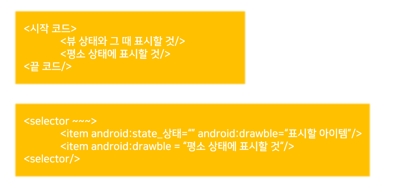 android:state 코드로 특정한 상태를 지정해 보이는 내용을 설정할 수 있습니다.
