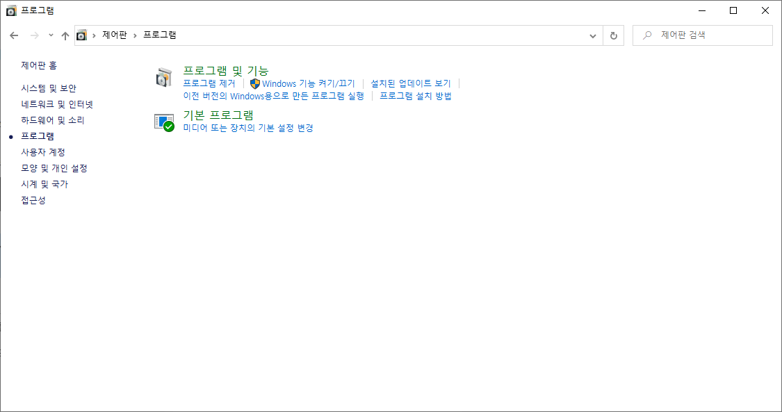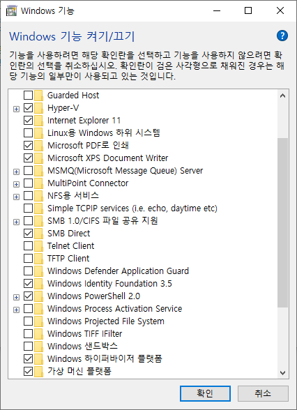 제어판에서 프로그램 - 프로그램 및 기능 - Windows 기능 켜기/끄기를 선택합니다.